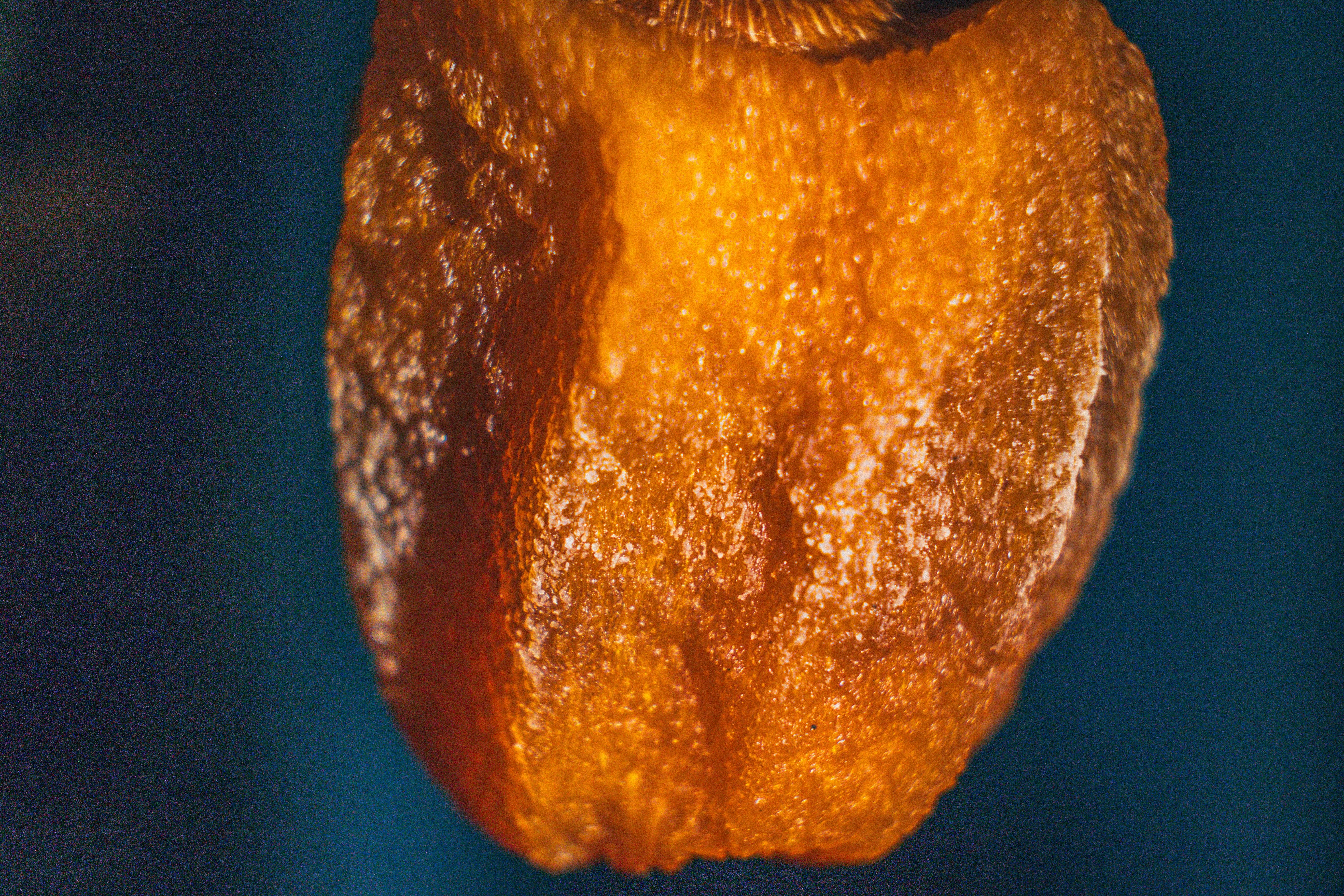Darker engrained patches are normal, these are tannins and sugars reacting with oxygen. Their puckering astringency comes from these tannins, which are soluble in fresh persimmons but polymerise during the drying process. They link together into larger molecular chains which, once they reach a certain size, can no longer dissolve in water (or saliva). At that point they’re considered insoluble, and thus we stop tasting them.