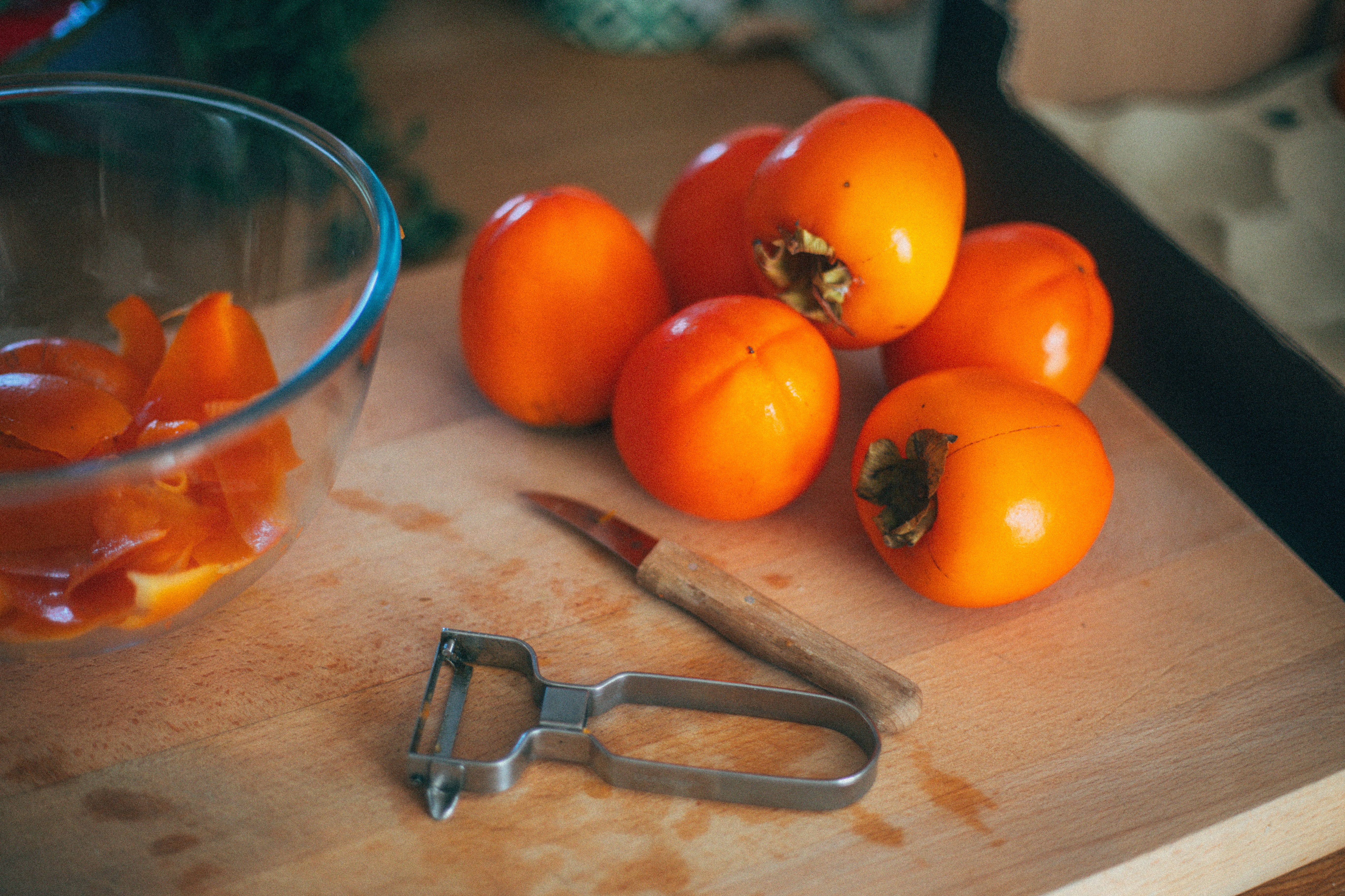 The trees themselves are surprisingly tough, and both Llyr and I are attempting to grow them in Wales. Persimmon wood is dense and hard, and some species were historically used for tool handles and furniture. In Japan, persimmon tannins (kakishibu) were extracted and used as a natural waterproofing and wood preservative for paper, cloth, and fishing nets. How cool is that?